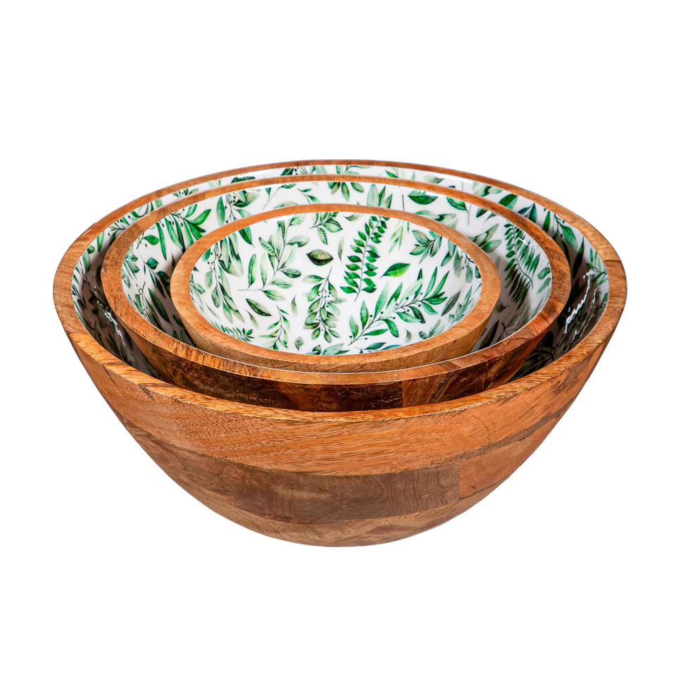 Printed Wood Salad Bowl Dinnerware kitchen Food Grade Printed Bowl 3-PCS Different Sizes set Flower Print Bowl