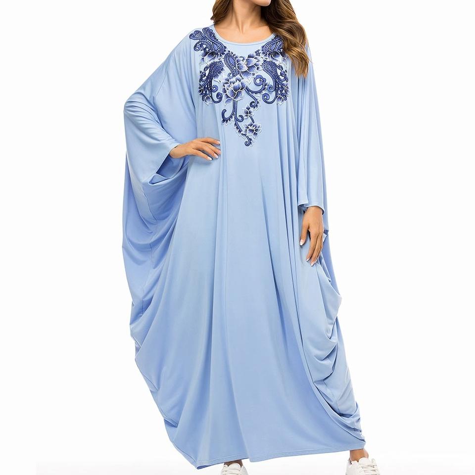 Printing Fashionable Long Blue Fancy Abayas Style Muslim Wear Casual Islamic Dress Females Turkish Dubai Abayas Hot Sale OEM