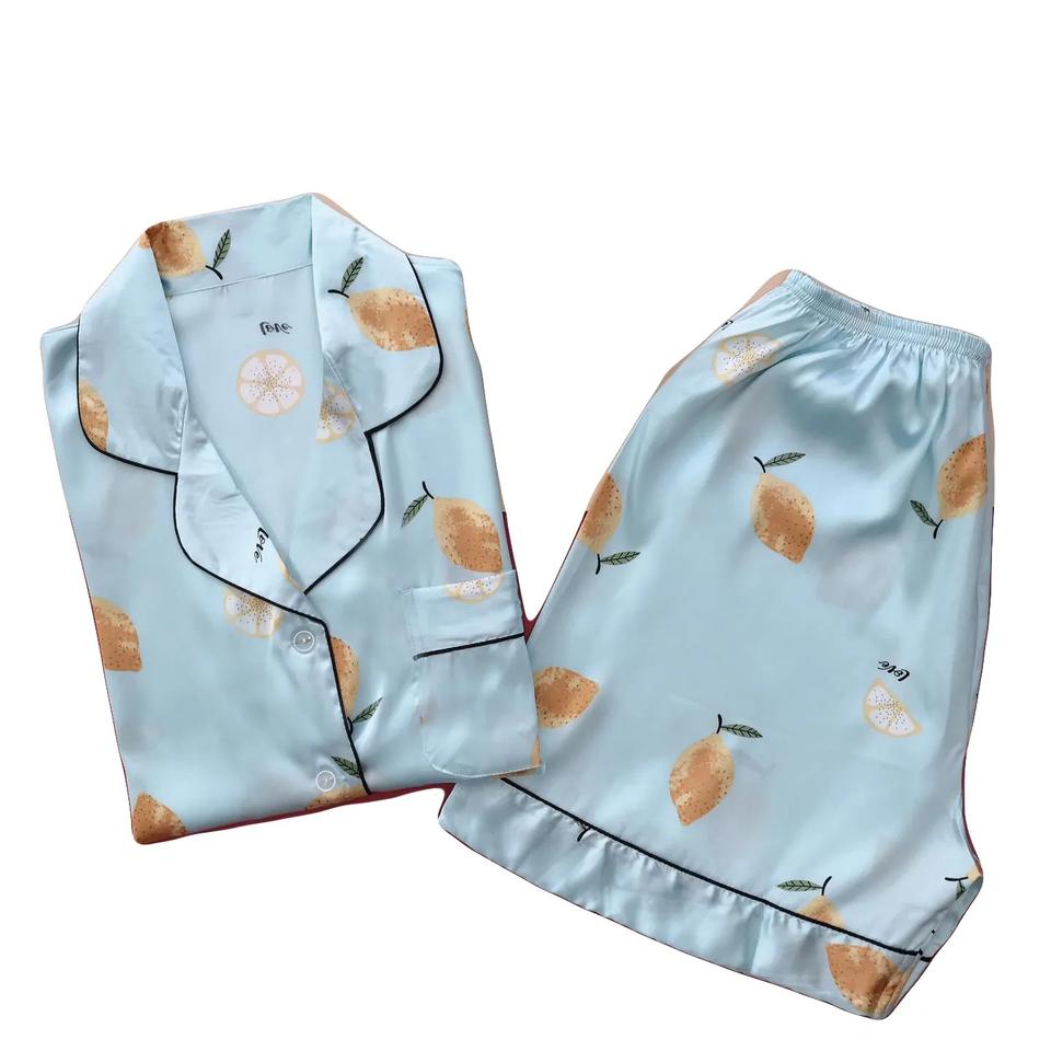 Printing Heart Home Wear Women's Spring and Summer Turn -down Sleeve Silk Pajamas Casual Pajamas Set Made in Vietnam