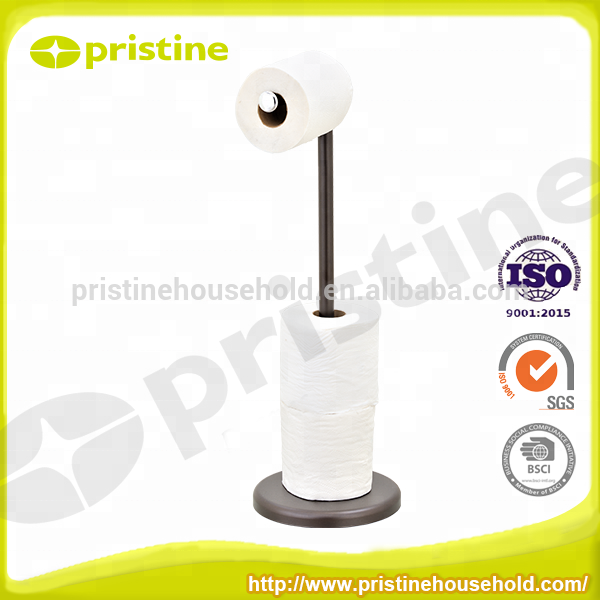 Pristine Modern Metal Round Toilet Paper Holder Stand Free Standing No Drilling Required Household Use