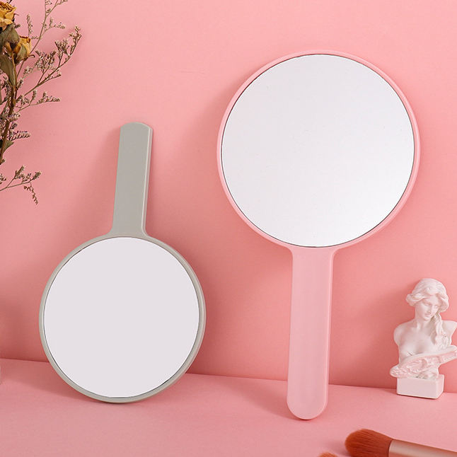 Private Handheld Label LOGO ABS Plastic Small Round Shape Makeup Mirror Custom Cosmetic Hand Mirror for Women
