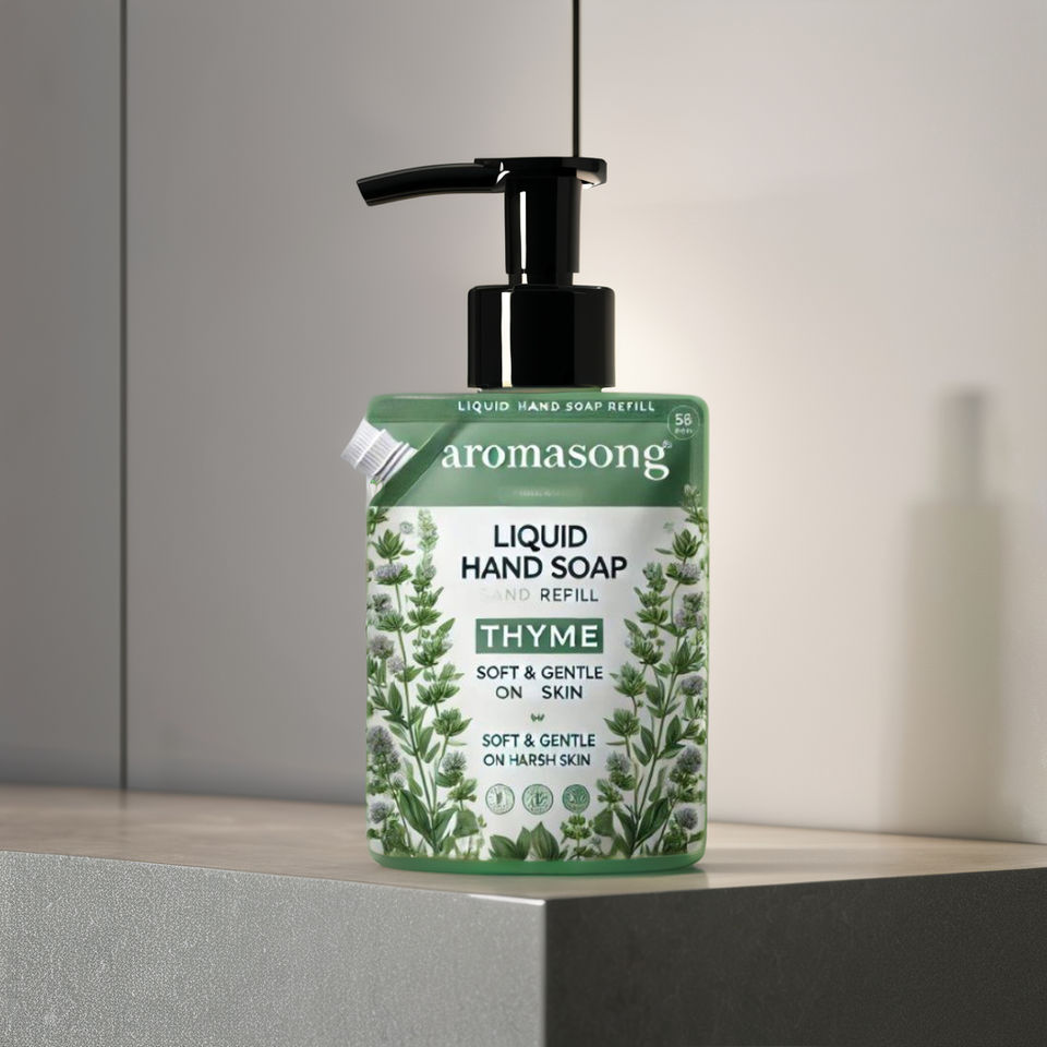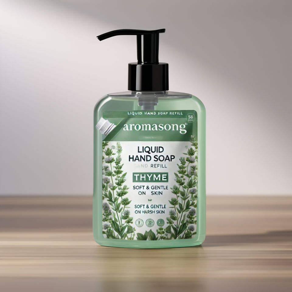 Private Label 4 Oz Liquid Hand Wash Soap Refill Refreshing Thyme Scent Eco-Friendly and Natural Custom Logo Made in USA