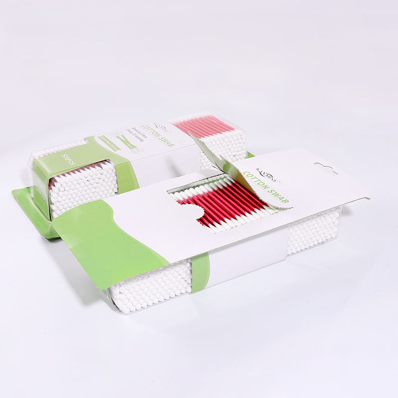 Private Label 500pcs Double Ended Cotton Bud Premium Paper Stick Swabs with Blister Card Packaging
