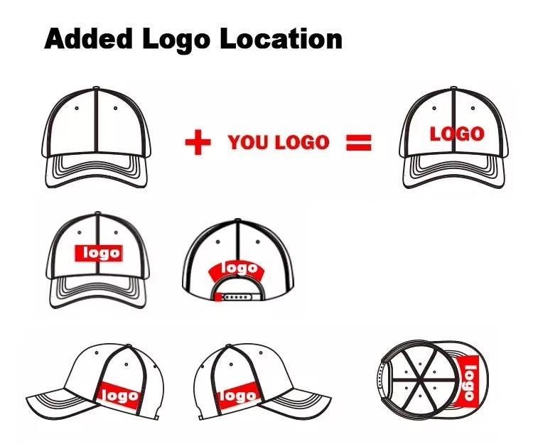 brim/visor, front panel, Left panel, Right Panel, back curved partLogo position