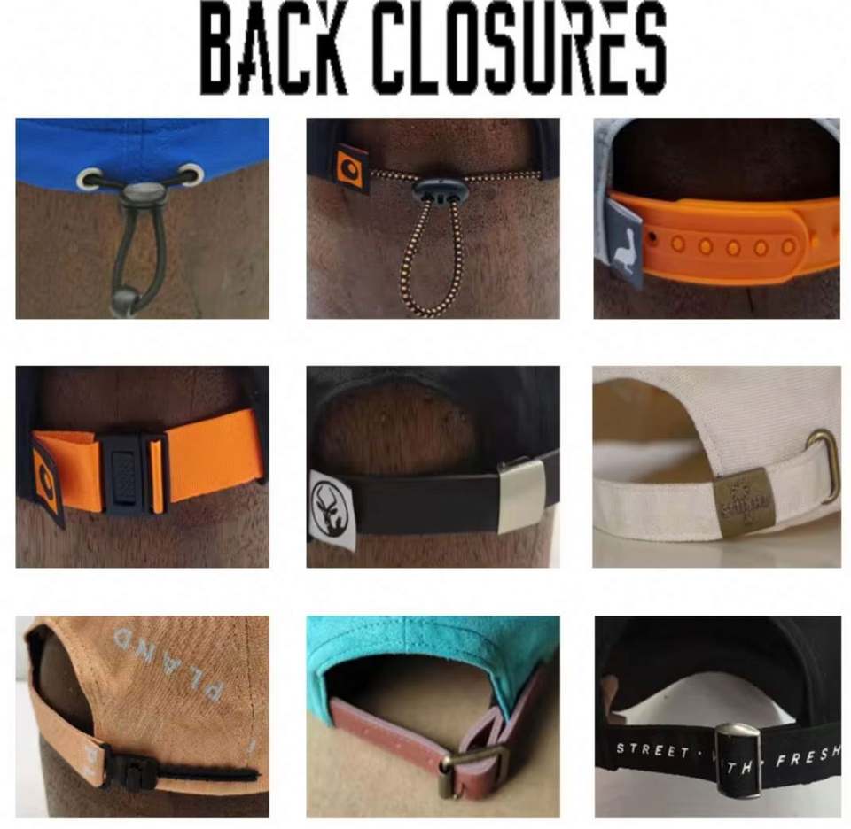brim/visor, front panel, Left panel, Right Panel, back curved partLogo position