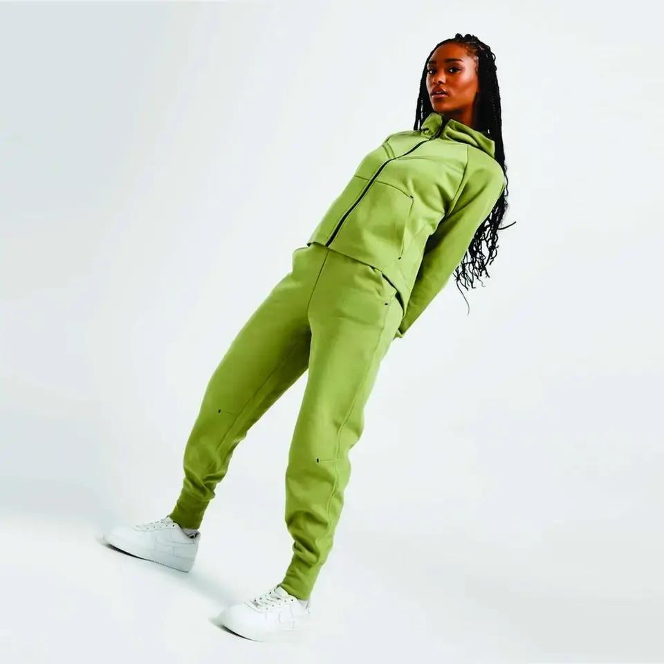 Private Label 63% Cotton 37% Polyester Black Women Tech Fleece Tracksuit Green Full Zip Hoodie Wholesale ODM