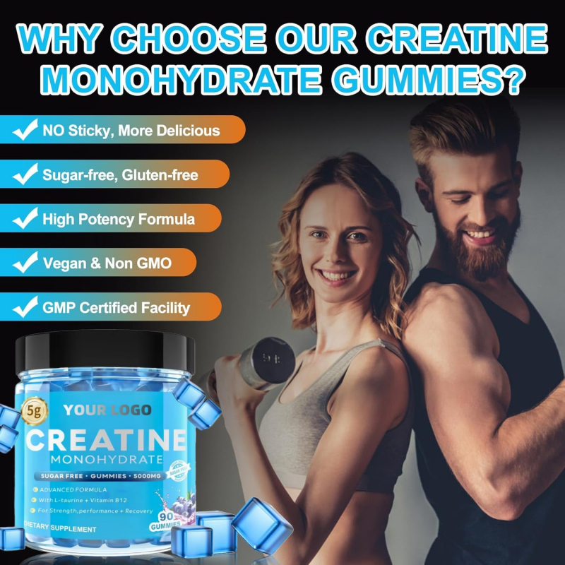 Private Label Adult Creatine Monohydrate Sports Nutrition Protein Electrolyte 5000mg Pump It Micronized Monohydrate Gummy Candy