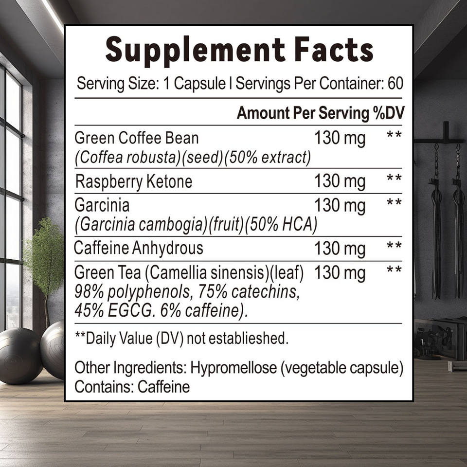 Green Coffee Bean Extract, Raspberry Ketone, Garcinia Cambogia Fruit Extract, Caffeine Anhydrous, Green Tea Leaf Extract