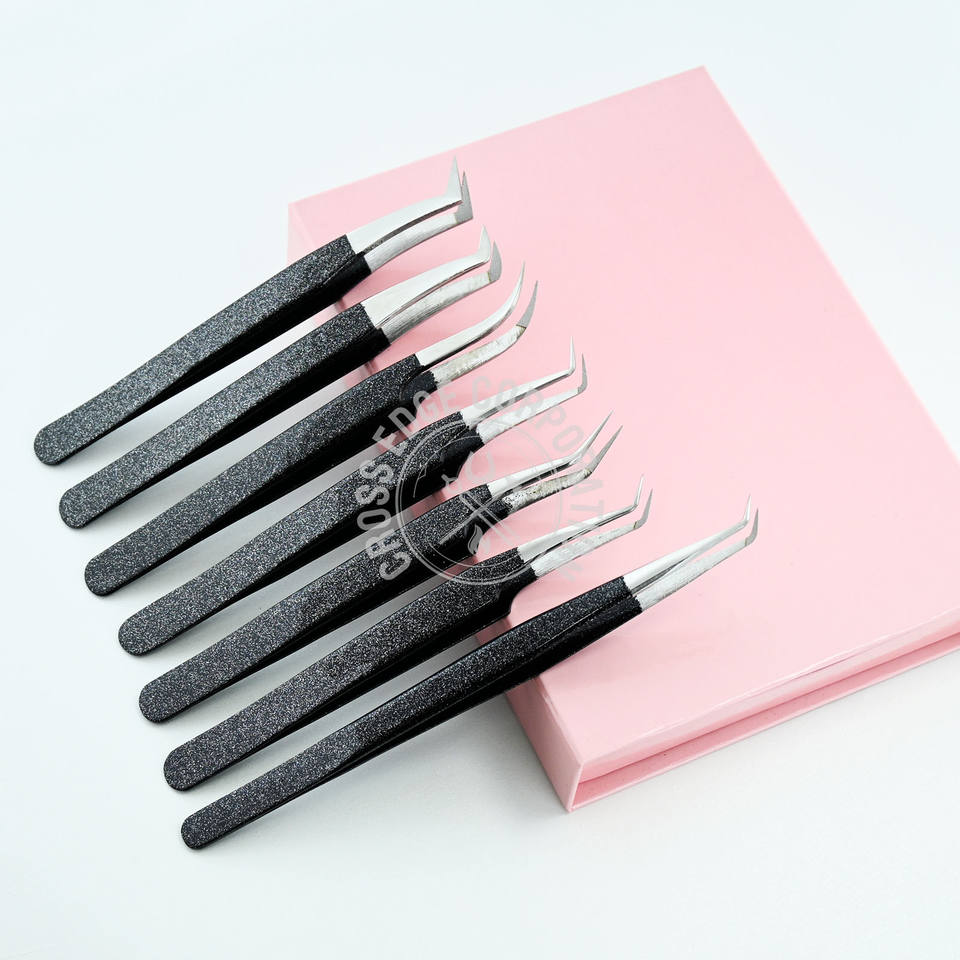 Private Label Black Stainless Steel Eyelash Applicator Tweezers