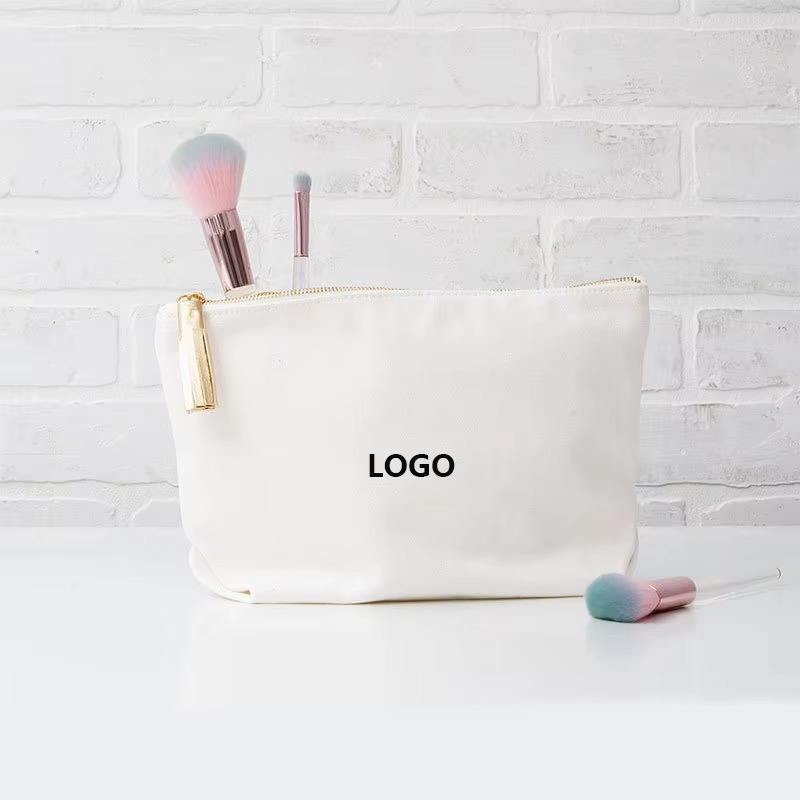 Private Label Cotton Canvas Makeup Bag Large Capacity Travel Cosmetic Pouch Custom Zipper Toiletry Bag With Logo For Women