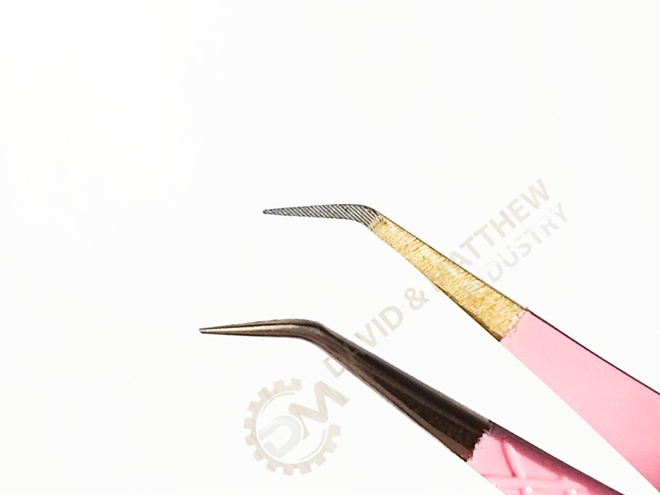 Private Label Custom 45 Degree Pink Isolation Pointed Fiber Durable Strong Grip Eyelash Extension Tweezers Stainless Steel