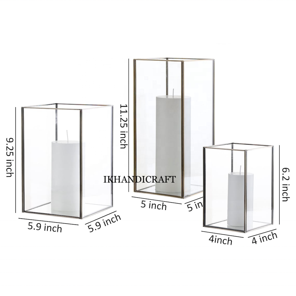 Private Label Custom Wholesale Fancy Luxury Metal Black Gold Candle Container Square Terrarium Lantern Jars Candle Pillar Holder