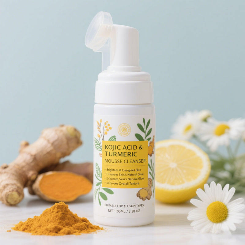 Private Label Face Wash Vitamin C Turmeric Whitening Face Wash With Brush Aloe Vera Foaming Cleanser