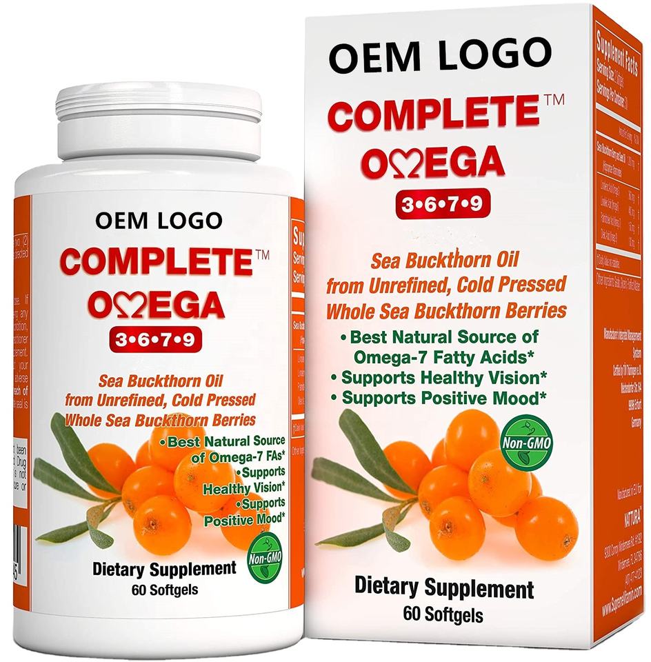 Private Label Herbal Supplement Seabuckthorn Fruit Seed Exact Sea Buckthorn Oil Soft Capsule Sea Buckthorn Oil Softgel