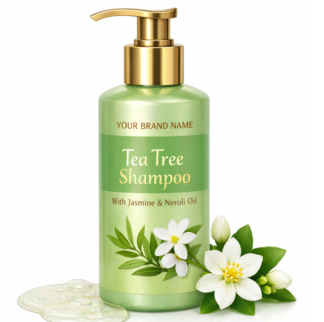 Private Label Herbal Tea Tree Shampoo with Jasmine & Neroli Oil OEM Bulk Anti-Dandruff & Scalp Refreshing Shampoo for Wholesale