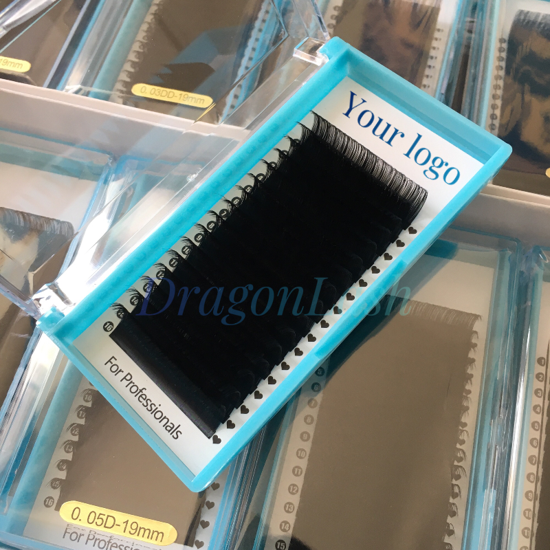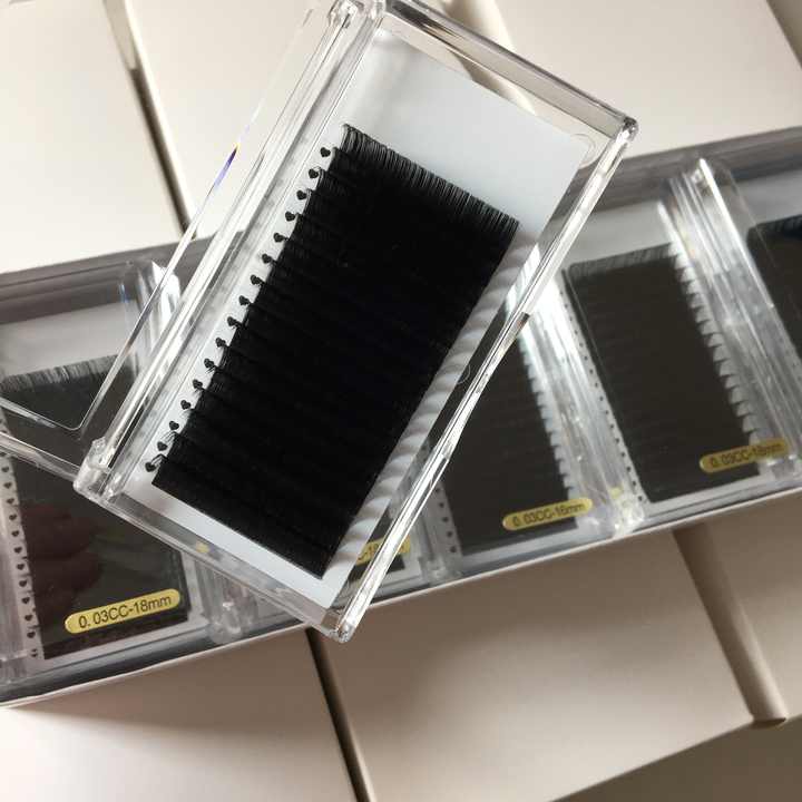 Private Label Korean PBT Fiber Eyelash Extension Tray 0.03 0.05 0.07mm Handmade Natural Long Easy-to-Grass Volume Lash Lc