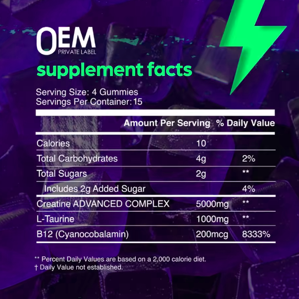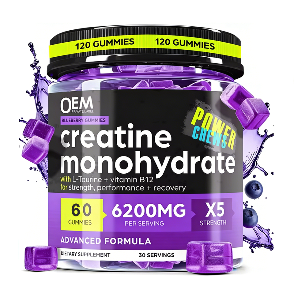 Private Label Muscle Building Creatine Monohydrate Gummy Halal Vegan 5000mg Pre Workout Muscle Growth Energy Boost Supplement