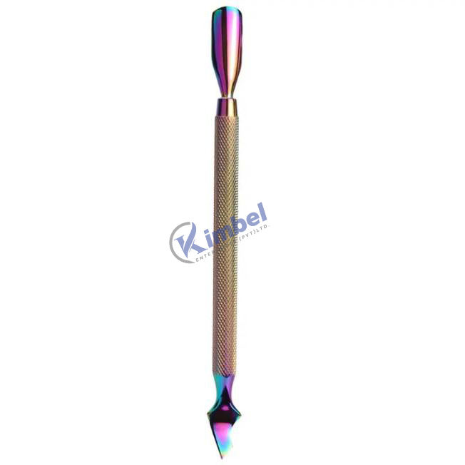 Private Label Nail Cuticle Pusher with Plasma Rainbow Finish Stainless Steel Cleaner Features