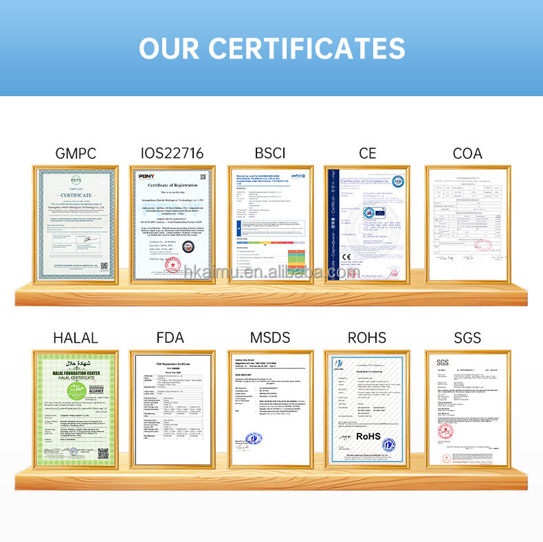 Certificates:CPNP SCNP GMP COA MSDS CPSR ISO22716