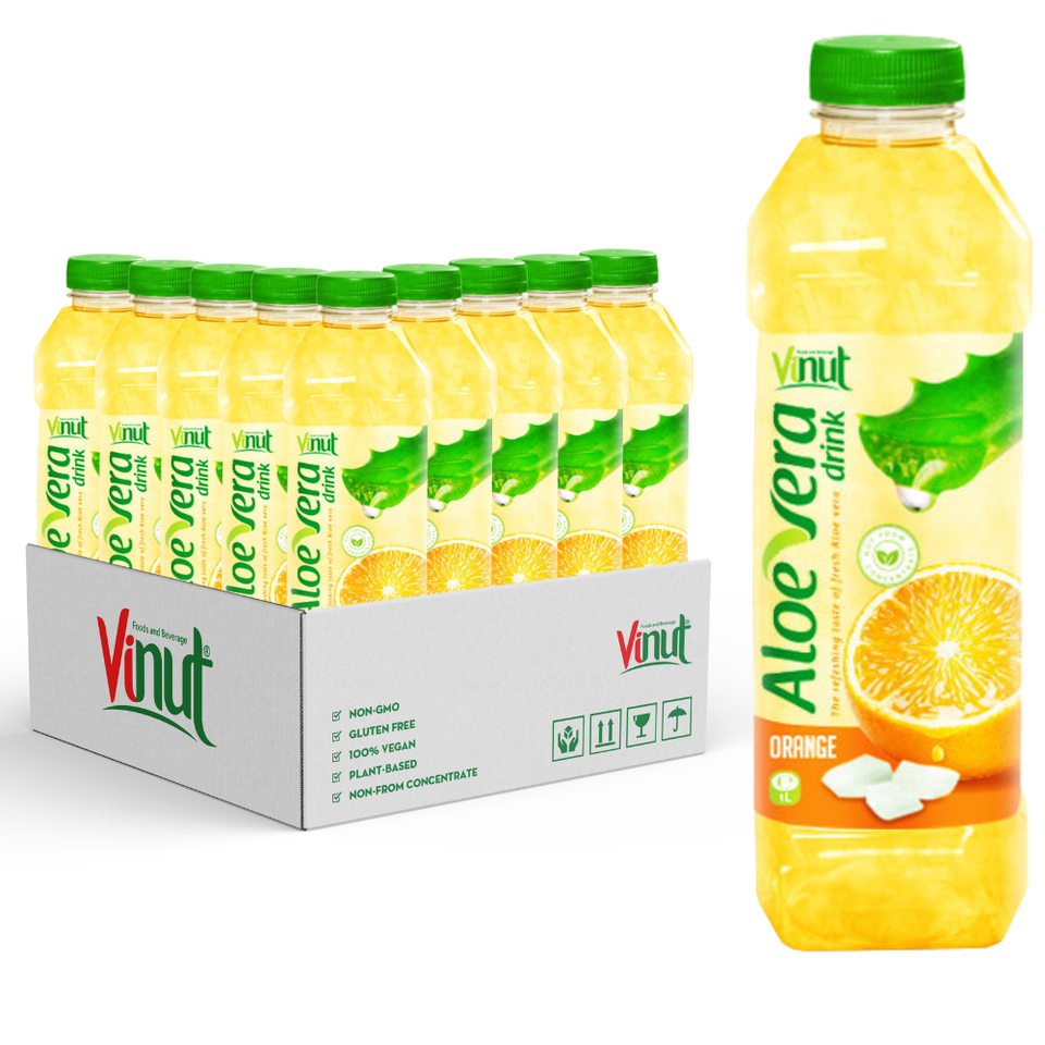 Private Label OEM - 1 Litter Water Bottle 100% Pure Aloe Vera Juice Orange- Wholesale Beverage in Vietnam - Free Sample