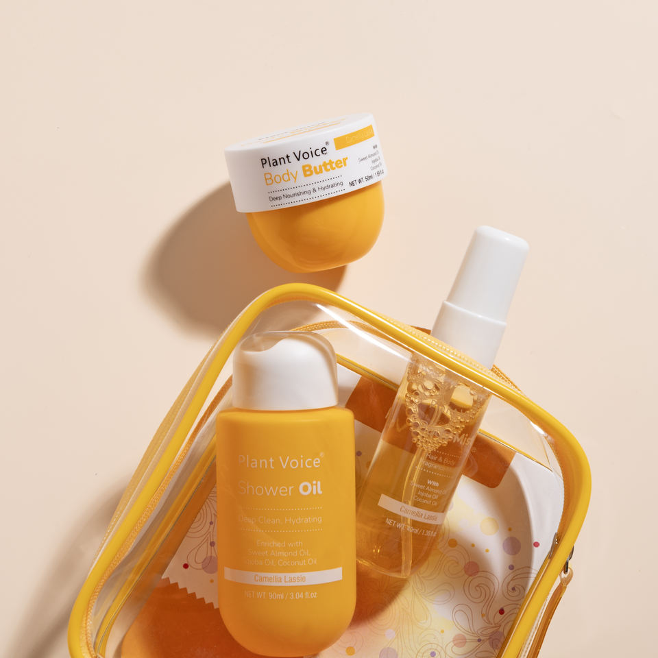 Private Label OEM/ODM Camellia Lassie Travel Size Shower Oil & Body Butter Set for Hotel Amenities Bulk Wholesale