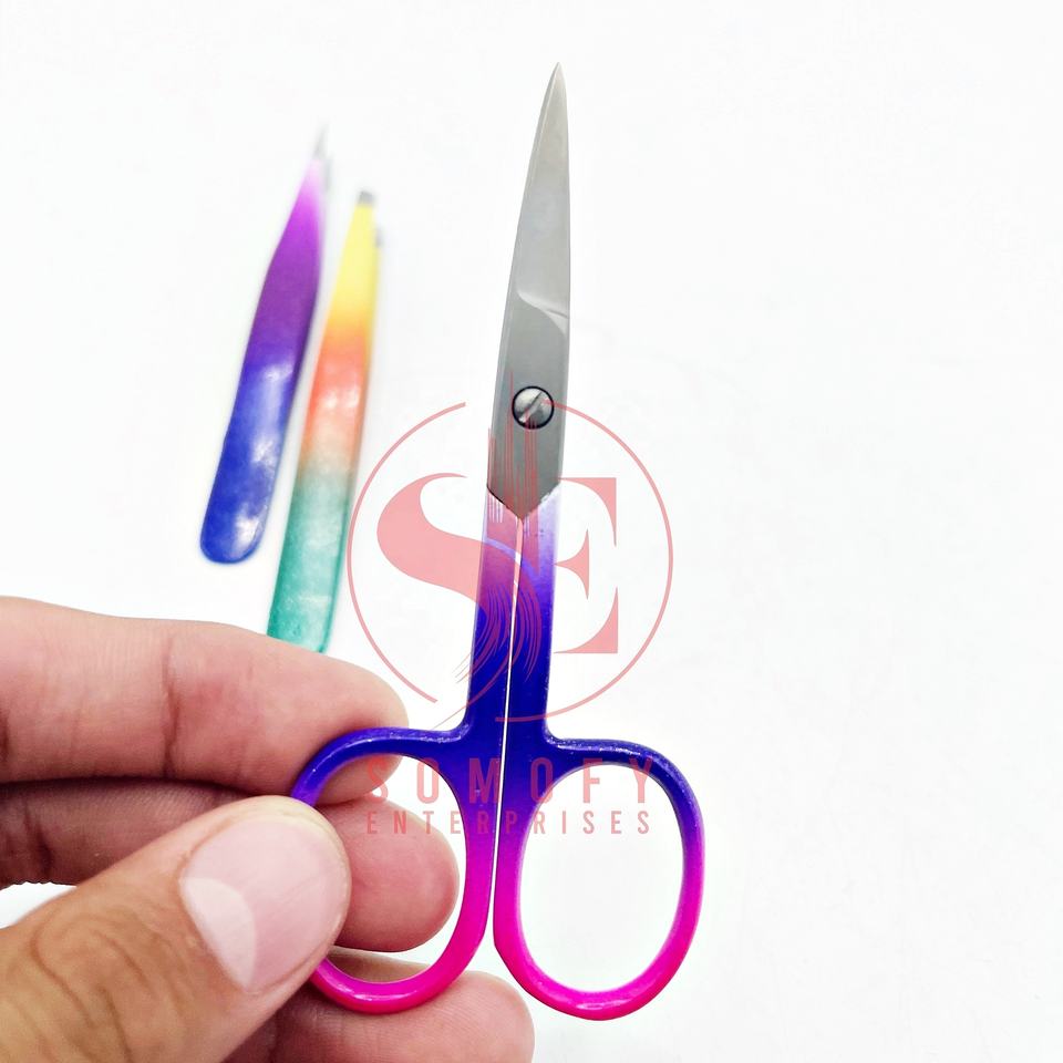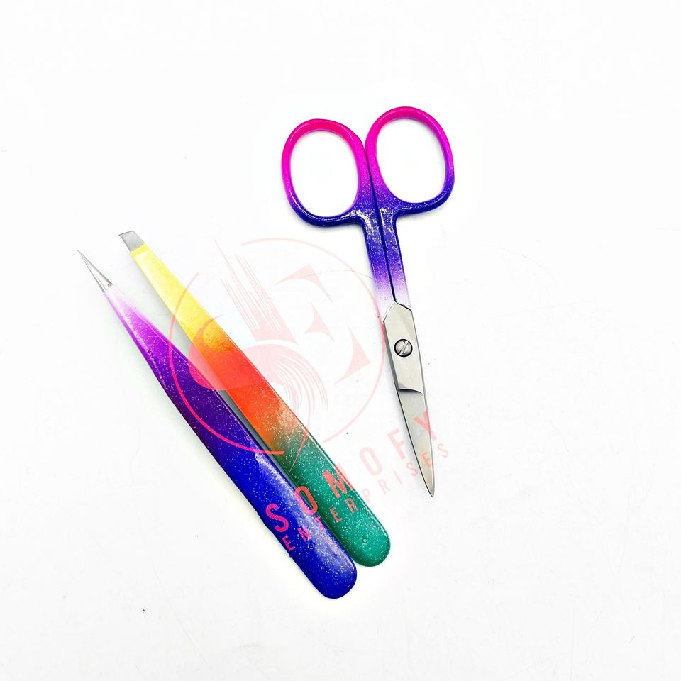Private Label Professional Quality Stainless Steel Eyebrow Eyelash Tweezers Scissor Slanted Tip Hair Removal Makeup Beauty Tool