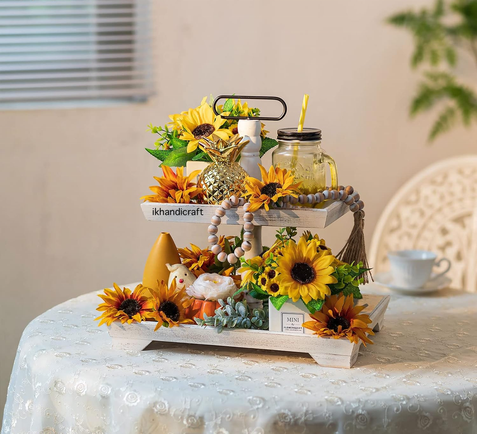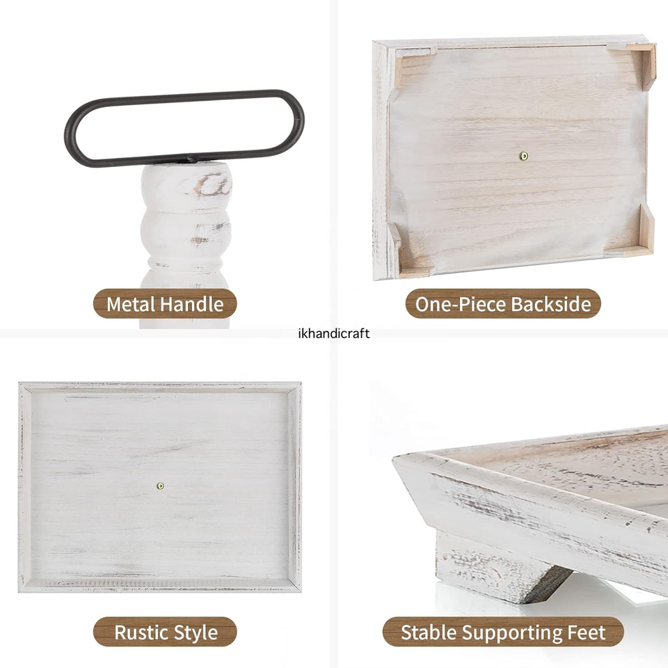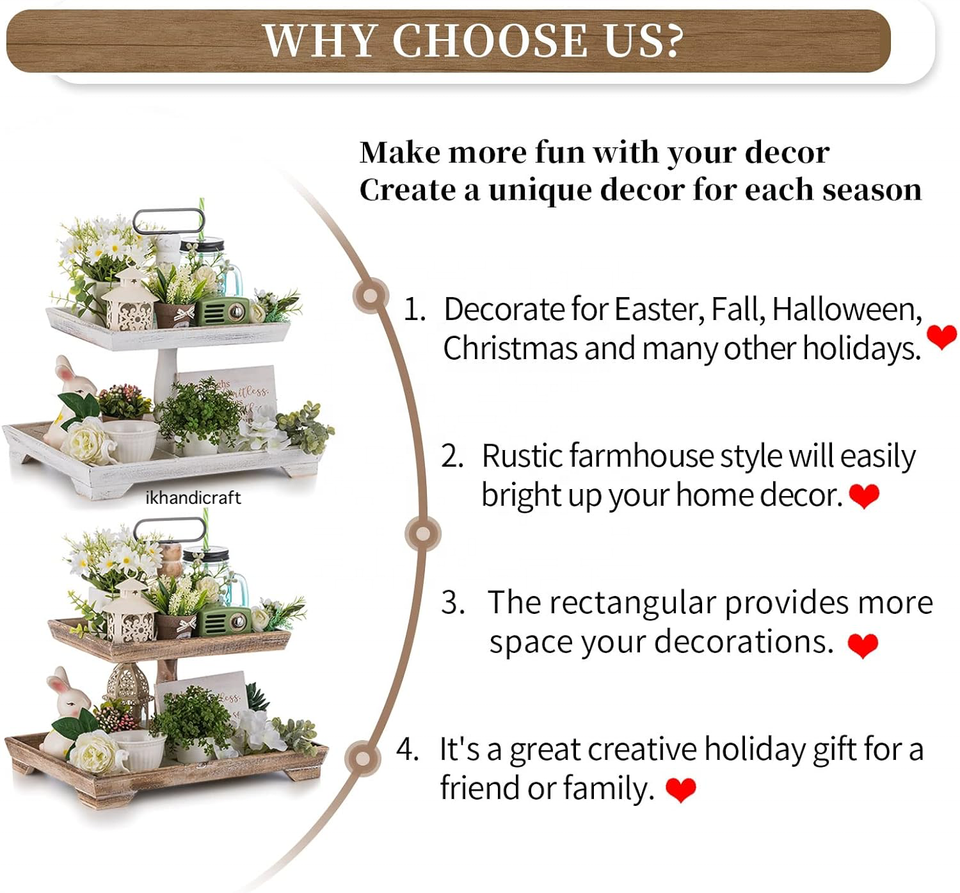 Private Label Rustic Wood 2-Tier Serving Tray Christmas Farmhouse Inspired Metal Art Tray Stand Kitchen Counter Thanksgiving