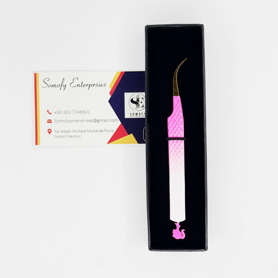 Private Label Stainless Steel Eyelash Tweezers with Pointed Curved Tips for Beauty Applications Like Eyelash Extension Grafting