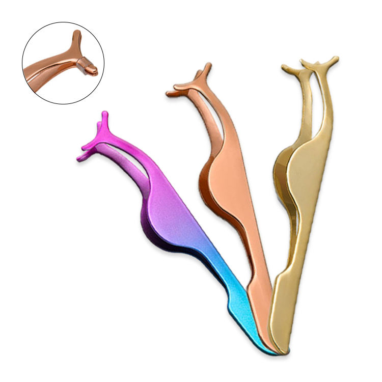 Private Label Stainless Steel Twezzers False Eyelash Tweezers Applicator Custom Logo Bulk Strip Eye Lash Twizzers Laah Tweezers