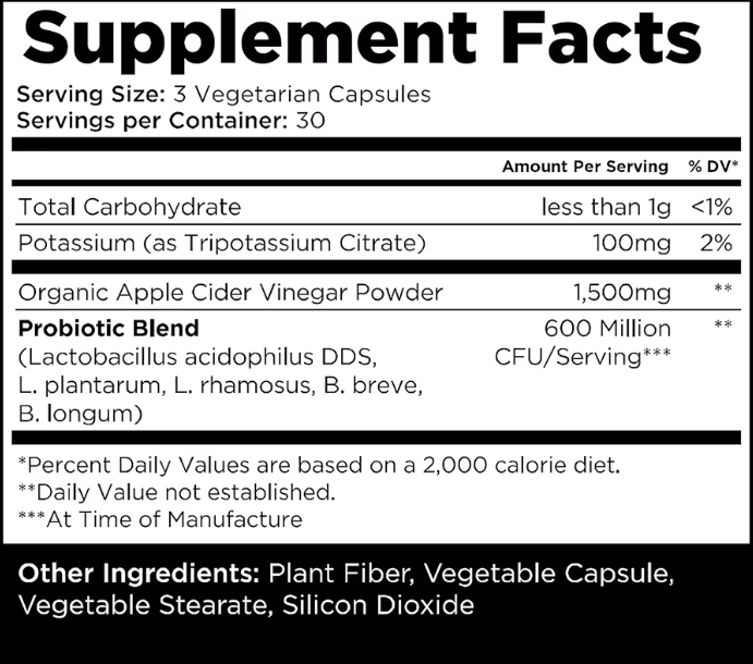 Sugar Free Metabolism Booster Weight Loss Apple Cider Vinegar Capsules