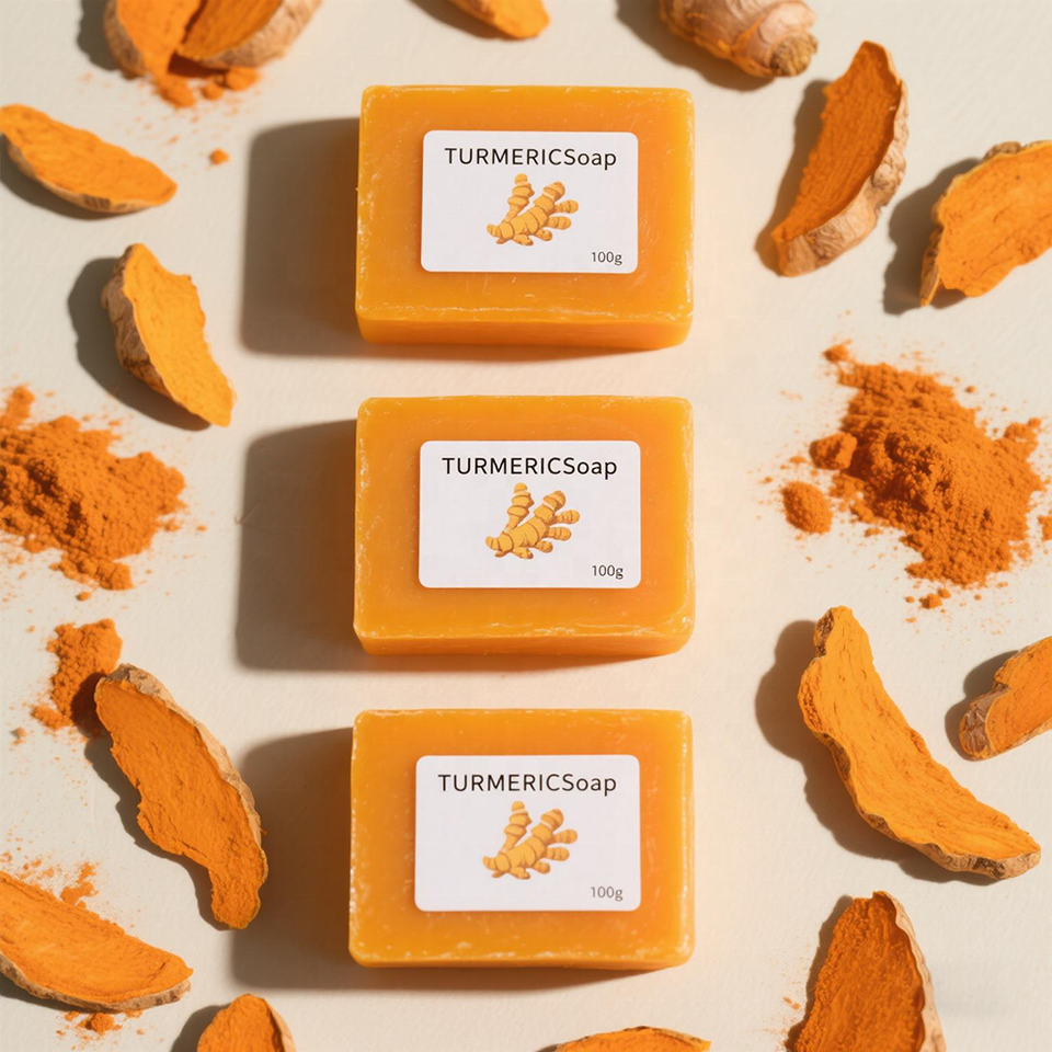 Private Label Turmeric Kojic Acid For Dark Spots Handmade Anti-Acne Whitening Soap Lemon Vitamin C
