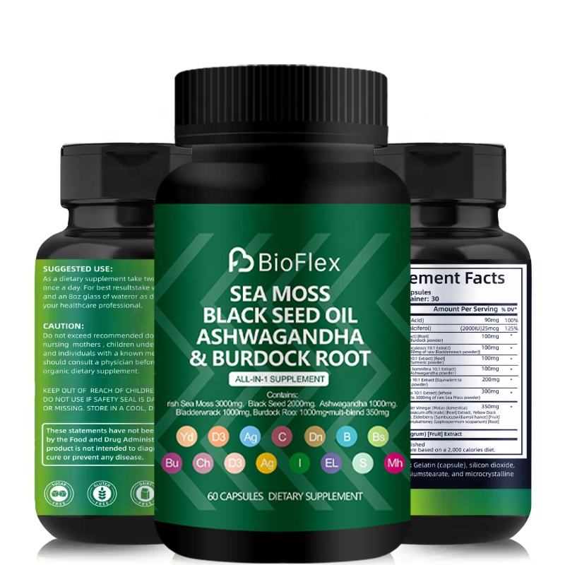 Sea Moss Black Seed Oil Ashwagandha Turmeric Burdock Root Herb ExtractMain Ingredient