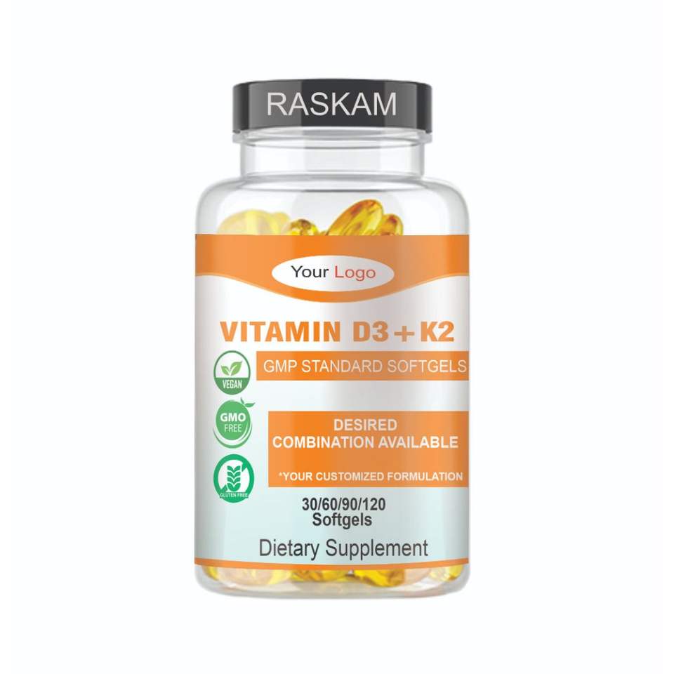 Private Label Vegan VITAMIN D3+K2 SOFTGEL Capsules Healthcare Supplement From Indian Exporter and Manufacturer