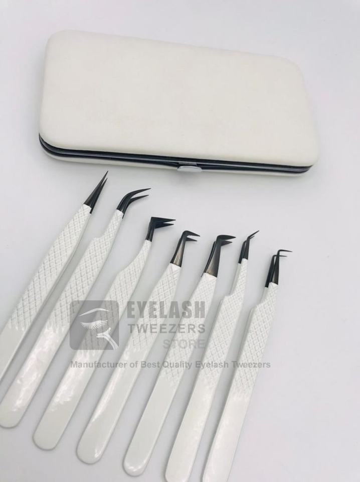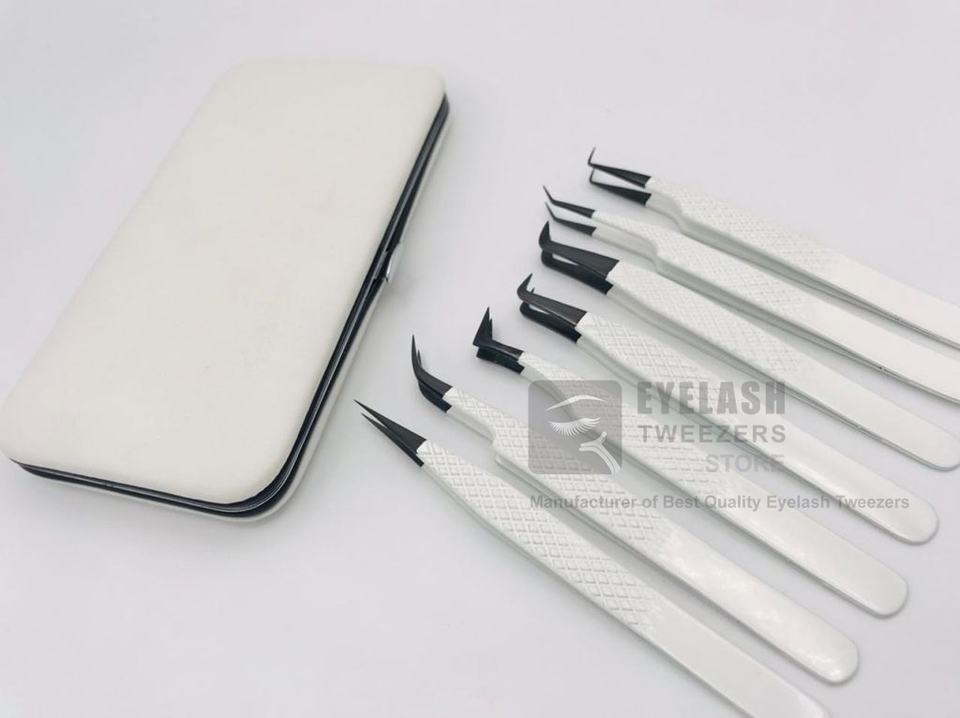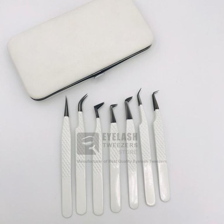 Private Label Wholesale Stainless Steel Eyelash Tweezers Sustainable Fiber Tip Lash Tweezer with White Tip for Eyelash Extension