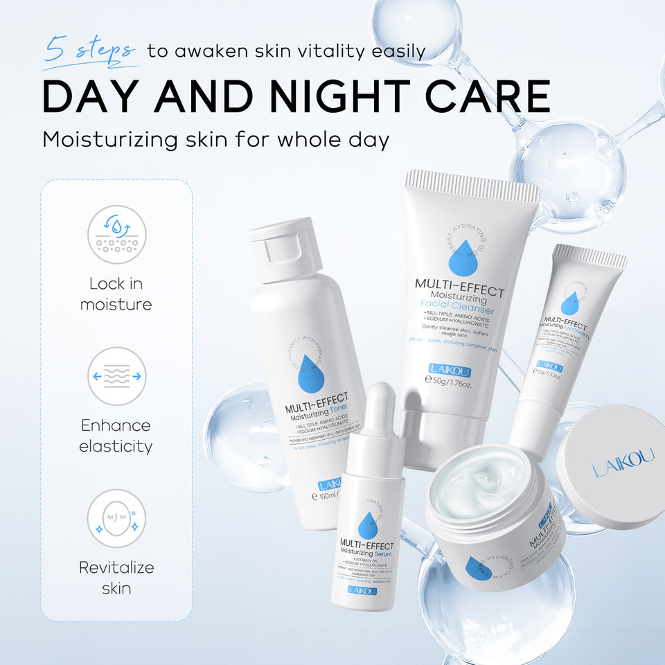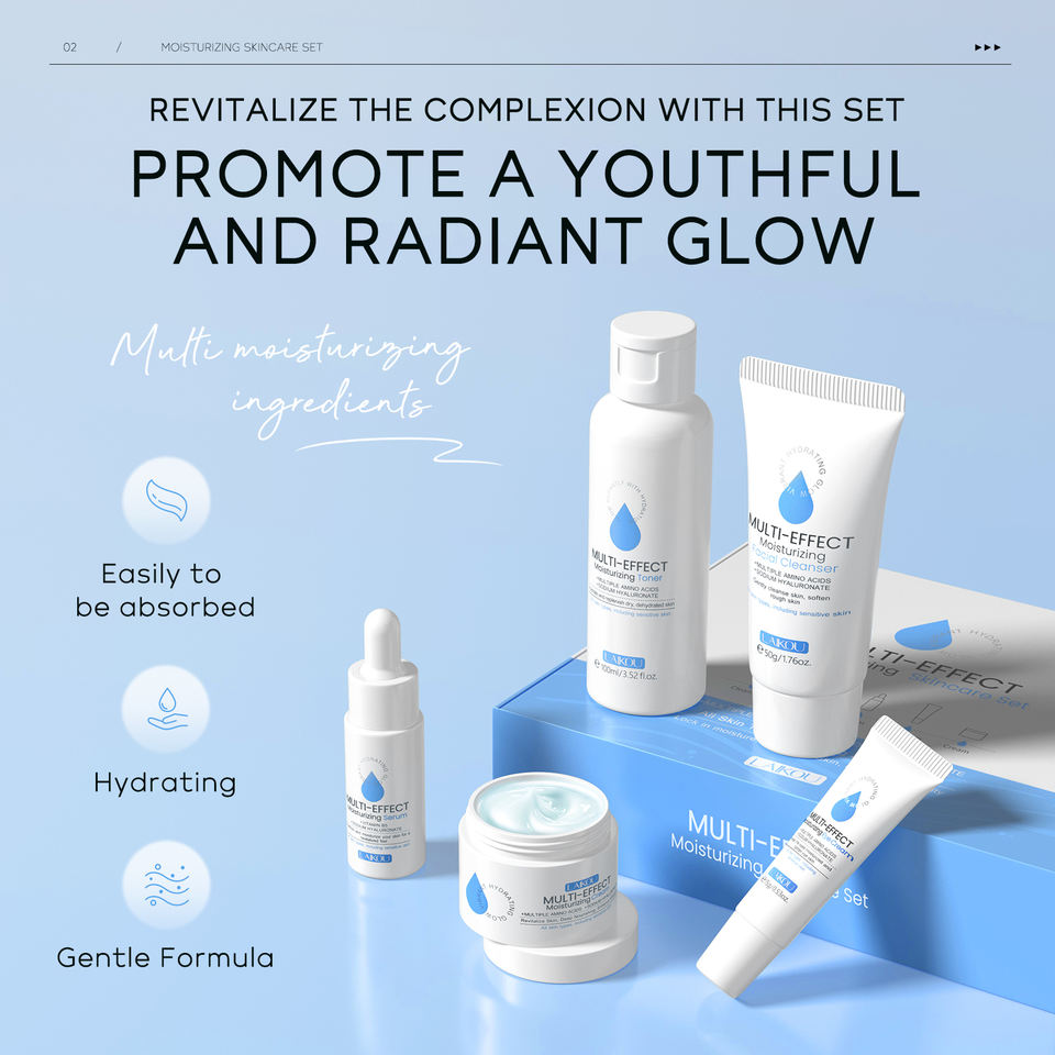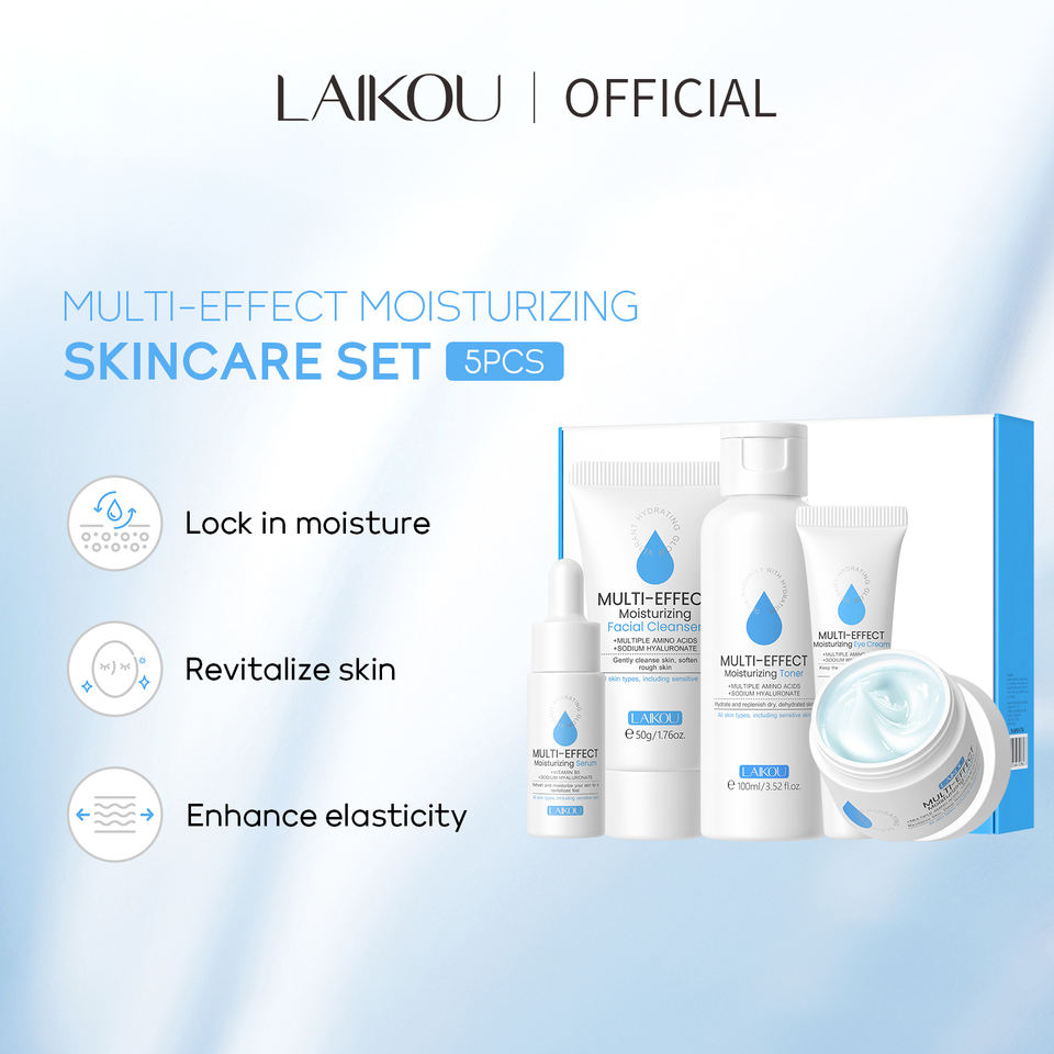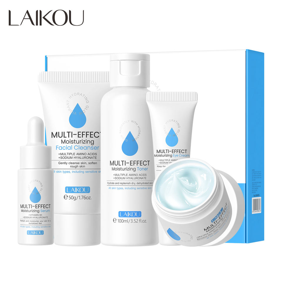 Private Logo 5pcs Multi-effect Moisturizing Skincare Set Amino Acid Facial Cleanser Toner Serum Essence Eye Cream No Heavy Metal