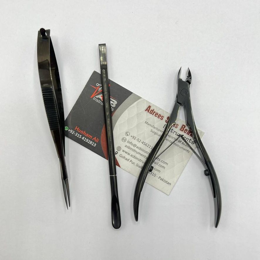 Private Logo Stainless Steel Black Professional Nail Tools Nail Pusher Spring Scissor Clipper Cutter Manicure Pedicure Tool Kits