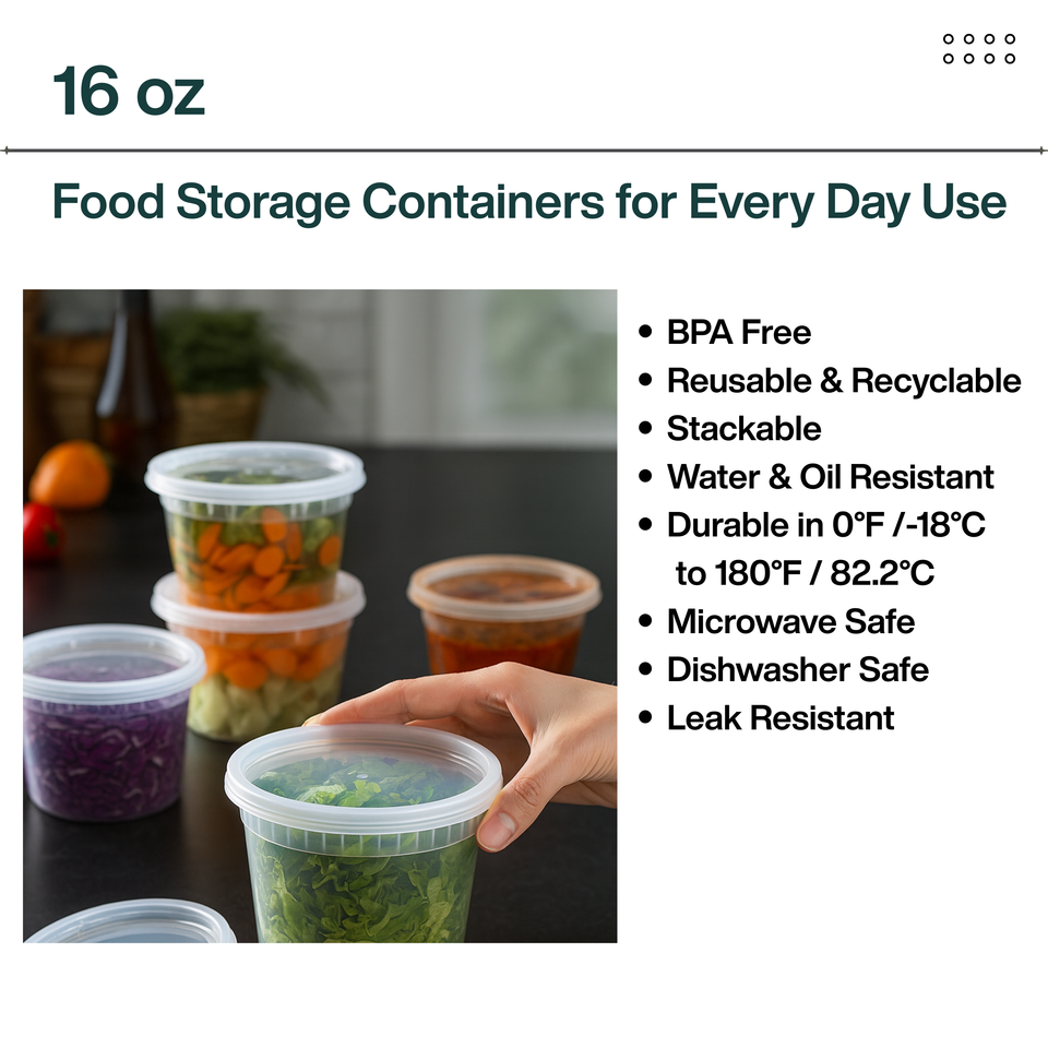 ProTakeOut PTODLH16 17 oz Heavy-Duty PP Deli Containers with Lids 240 Sets (24/20) Microwave & Freezer Safe Durable