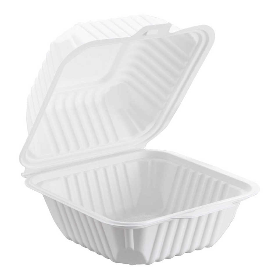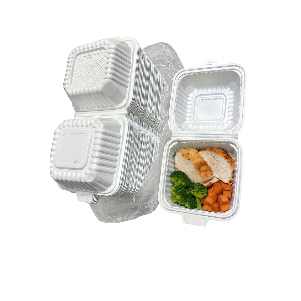 ProTakeOut [5 X 4.5] White 1-Comp 250 Pack Center Slide Lock Hinged Take-Out Containers Durable & Eco Friendly MFPP