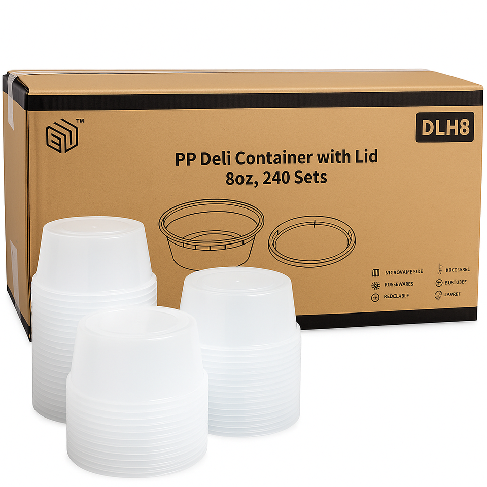 ProTakeOut 9 oz Heavy-Duty PP Deli Containers with Lids (4.63x1.69 In) 240 Sets (24/20) Microwave & Freezer Safe Durable