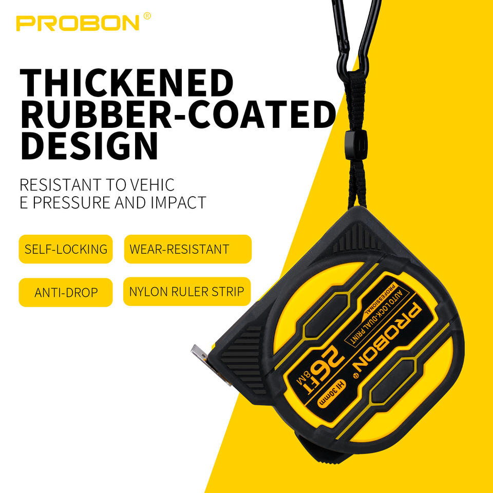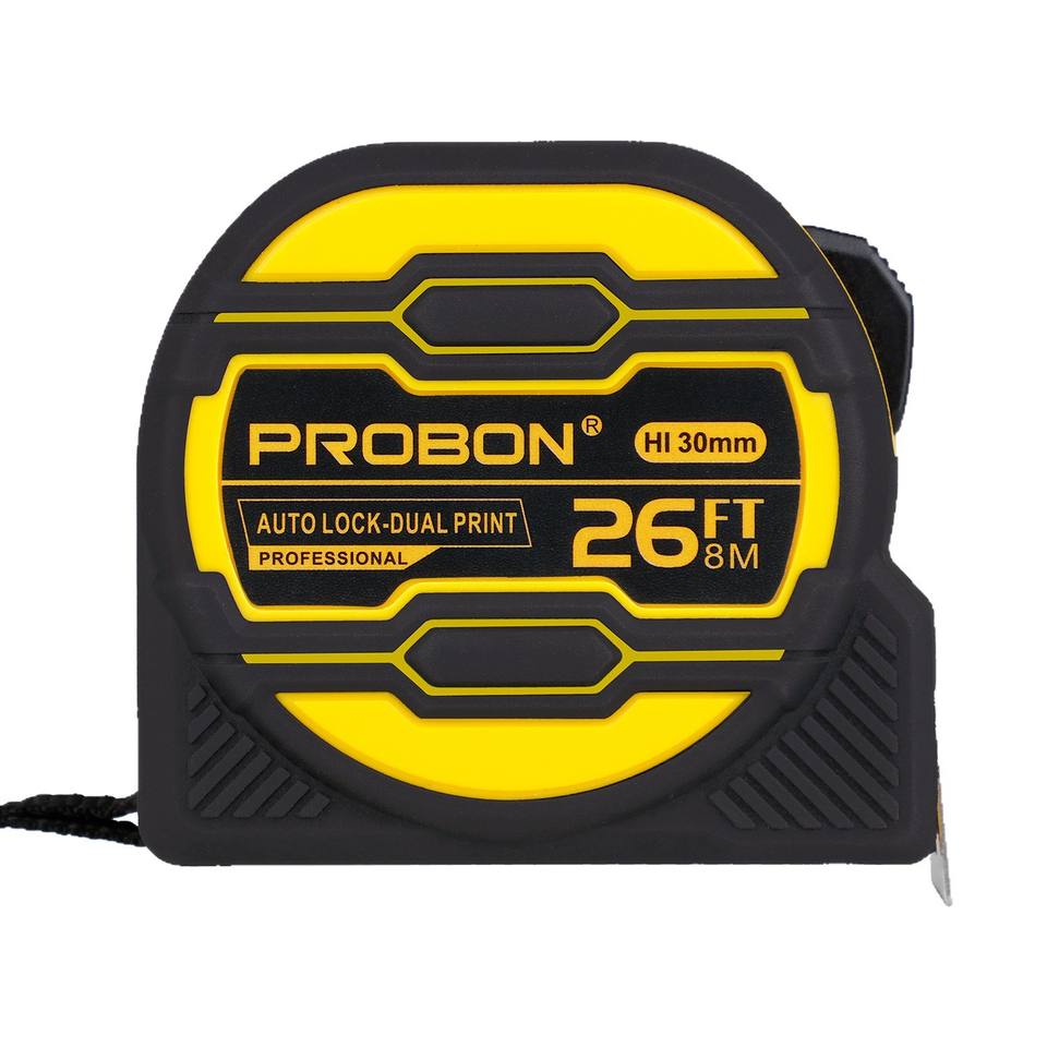 Probon Tape Measure 8M 26Ft Self Locking Auto Lock Dual Print Professional Measuring Tool With Strong Magnet And Nylon Blade