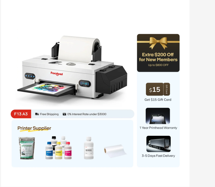 Procolored New Freeshipping CE DTF Printer Machine Semi-Automatic DIY A3 30cm Size L1800 Oven Bundle Textile Small Business