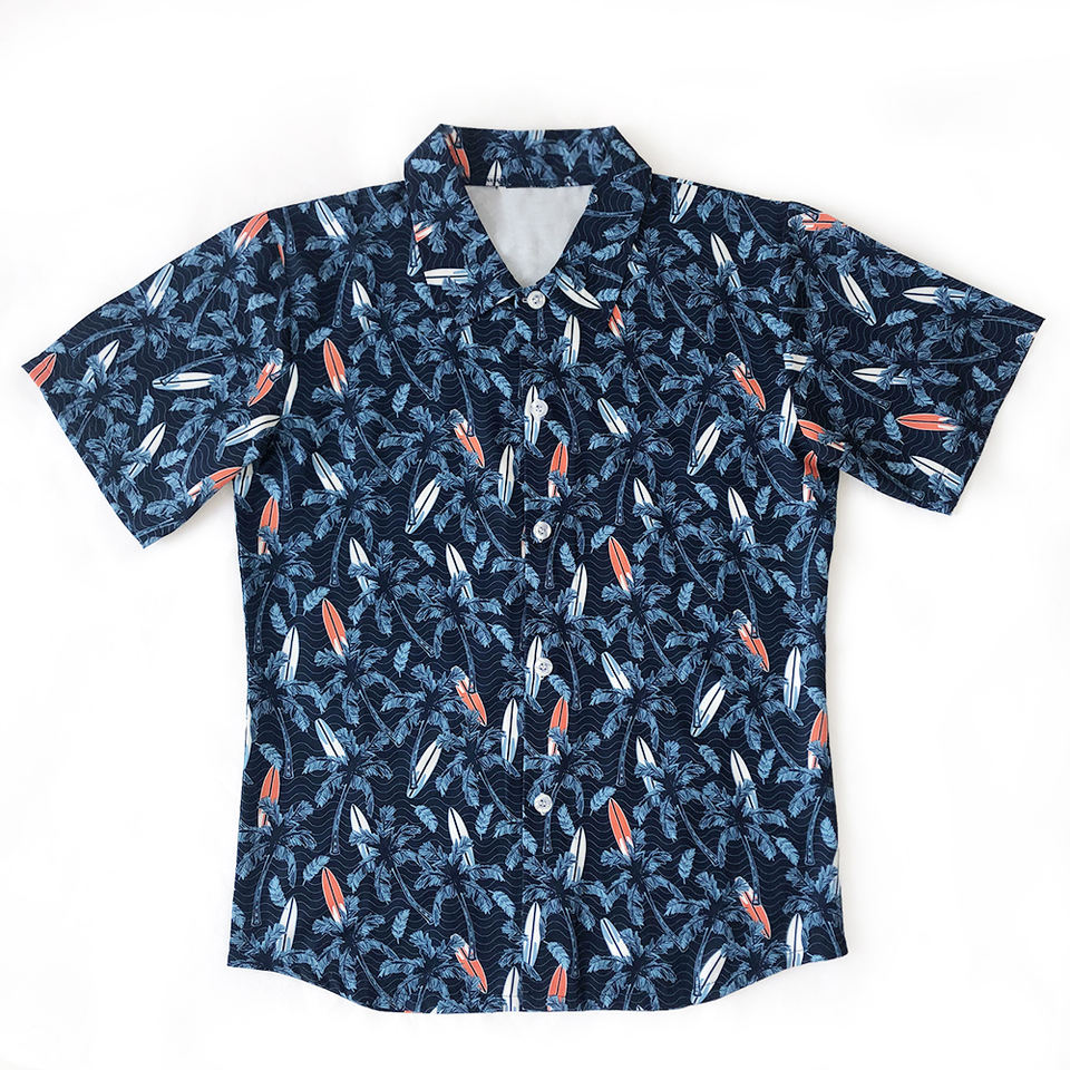 Professional 100% Polyester Hawaiian Shirts Breathable Summer Hawaii Shirts Fashion Matching Set Oem Beach Shirt