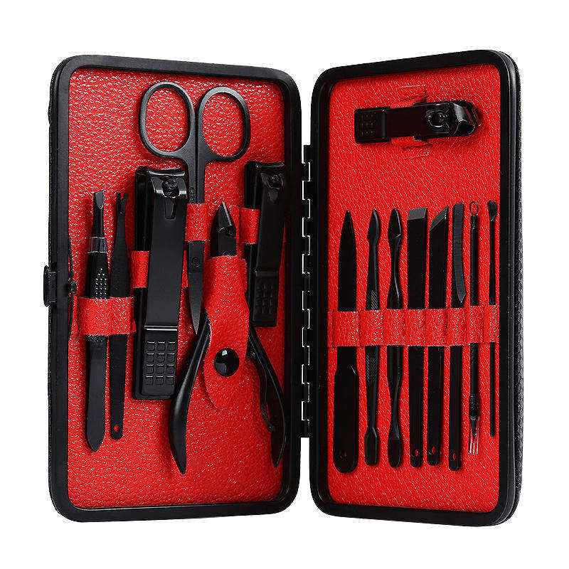 Professional 15pcs Custom Logo Manicure Pedicure Set Multi-Purpose Stainless Steel Nail Clippers with PU Foot Care Beauty Box