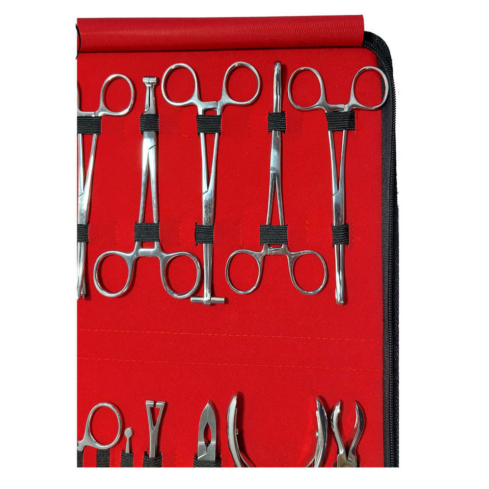 Professional 16-Piece Premium Quality German Stainless Steel Body Piercing Tools Kit Veterinary Surgical Instruments Leather