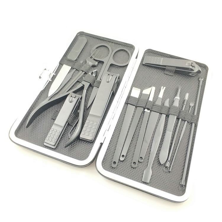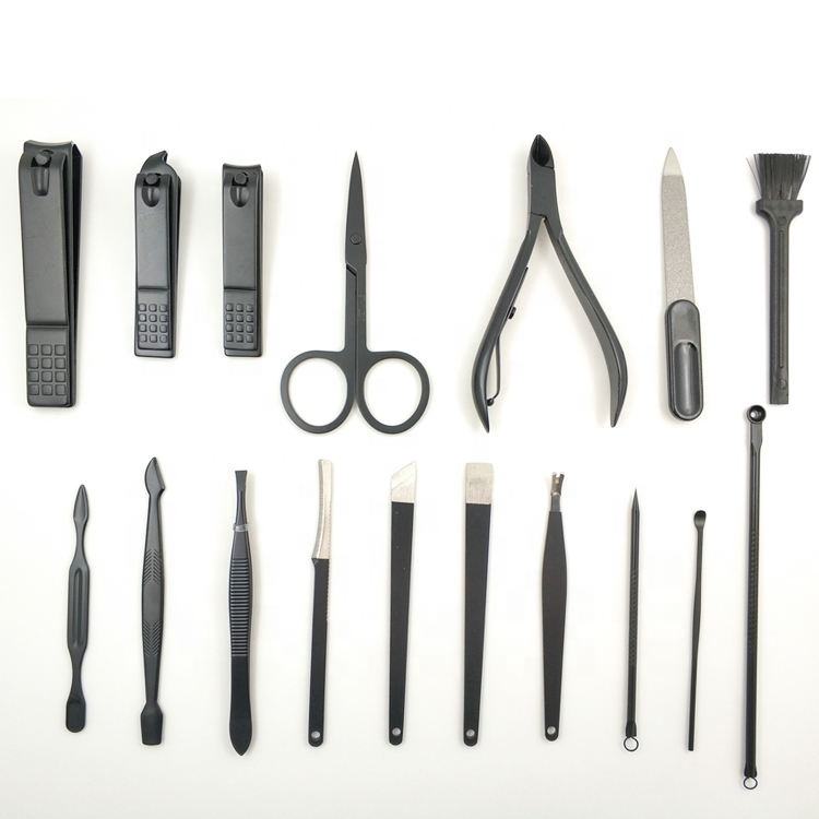 Professional 17pcs High Quality Black Stainless Steel Nail Tools Manicure Pedicure Kits Foot Accessories Premium Manicure Set