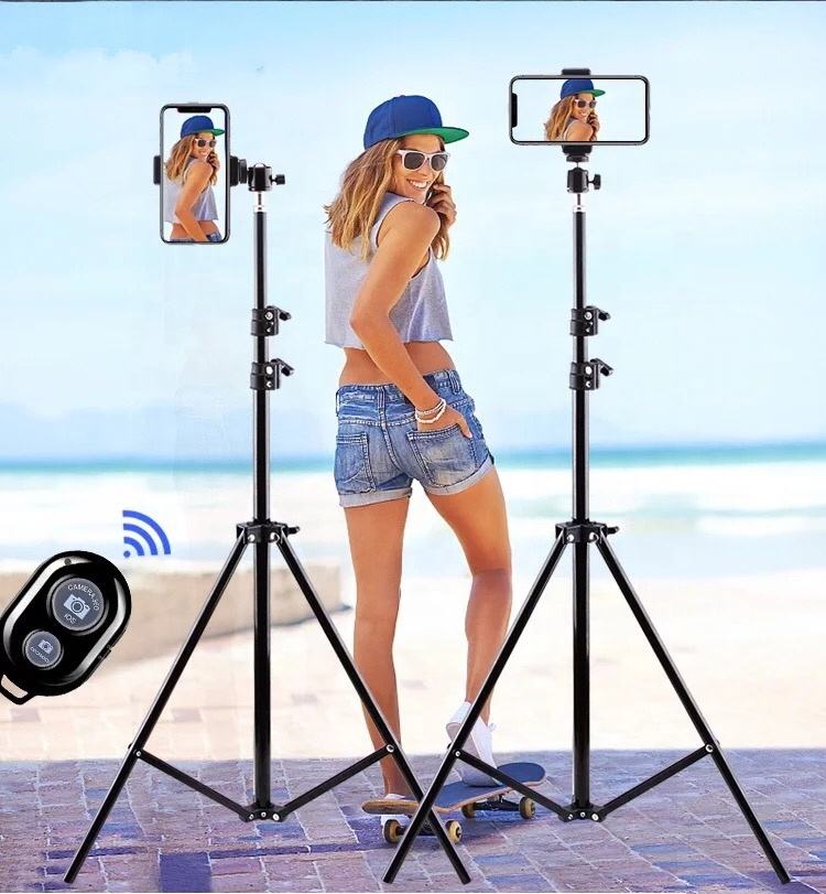 Professional 2.1m Aluminum Alloy Travel Tripod Stand Durable Portable for Mobile Phone Selfies Video Photo Shooting Wireless