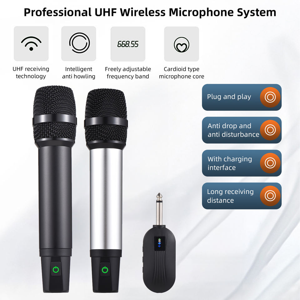 Professional 2.4G Rechargeable Dynamic Microphone System Wireless Handheld Omni-Directional Polar for Singing Made Durable Metal