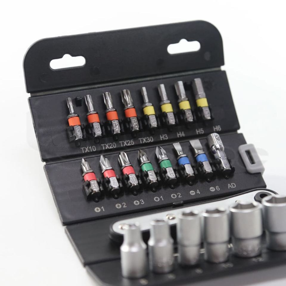 Professional 23-Piece 1/4" Socket and Ratchet Wrench Set for Workshop Use Taiwan Made