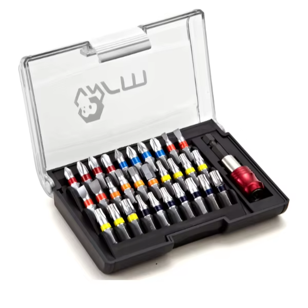 Professional 32-Piece S2 Alloy Steel Impact Bit Set Magnetic Screwdriver Bit Kit Matte Chrome Finish Color Bands for Drilling