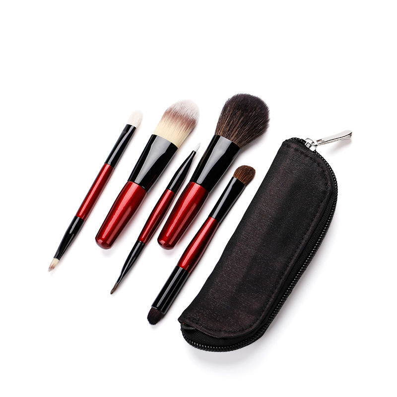 Professional 5-Pcs Black Mini Brush Set Synthetic Hair with Travel Pouch Soft Natural Private Label Free Sample